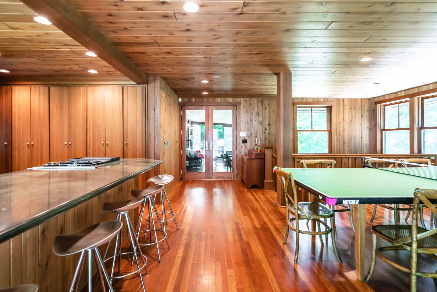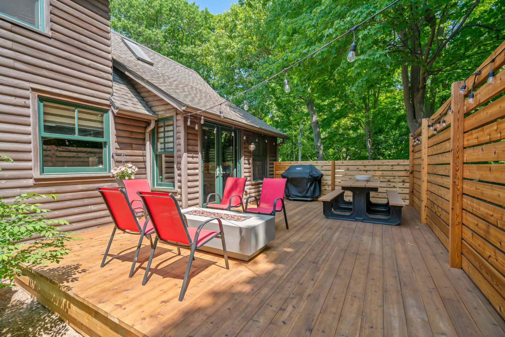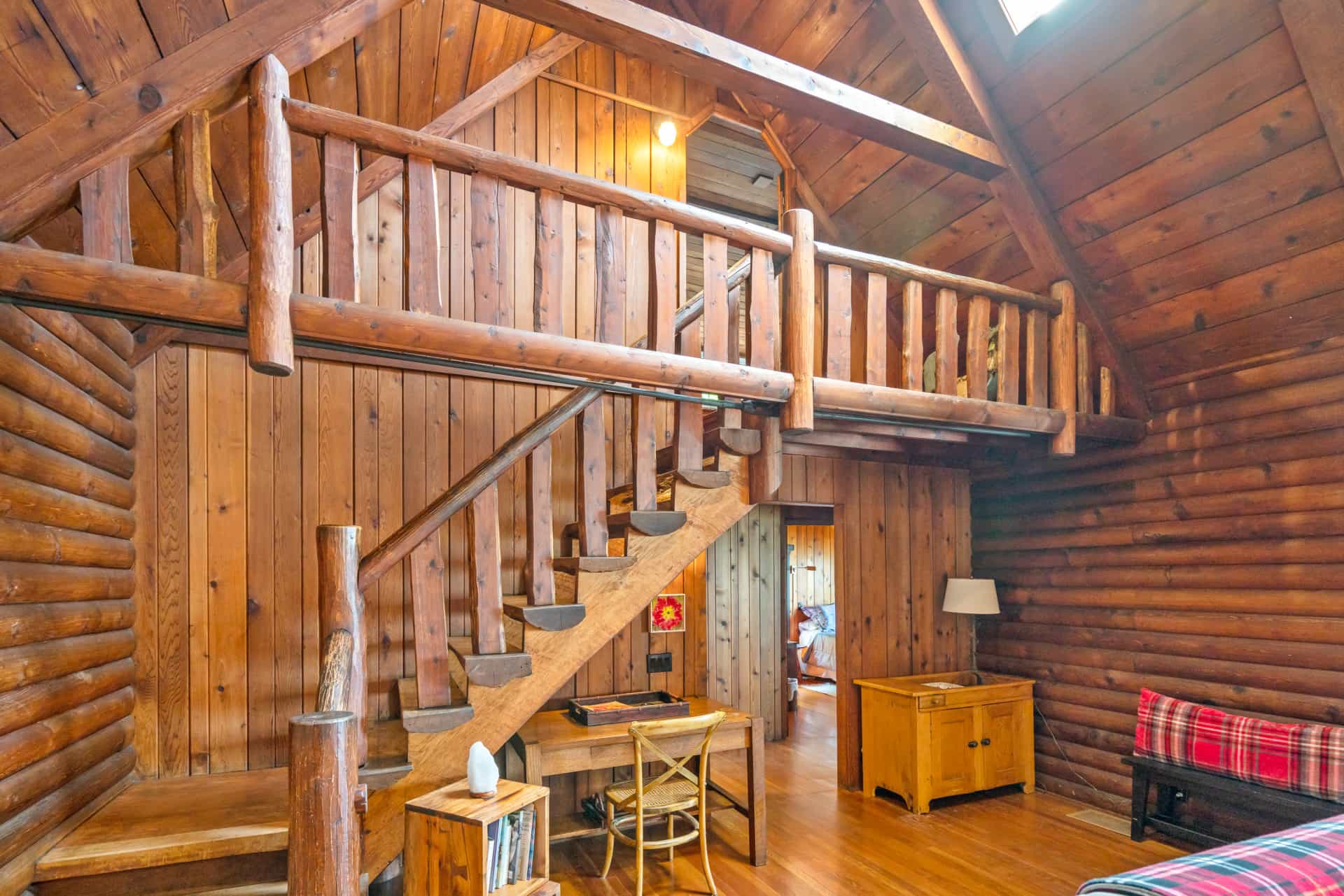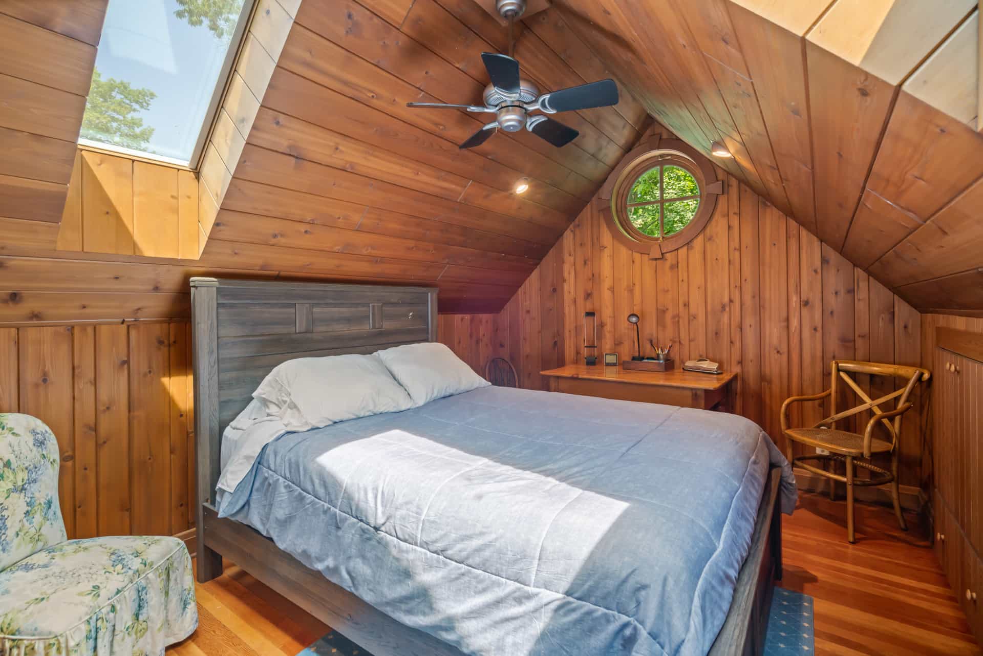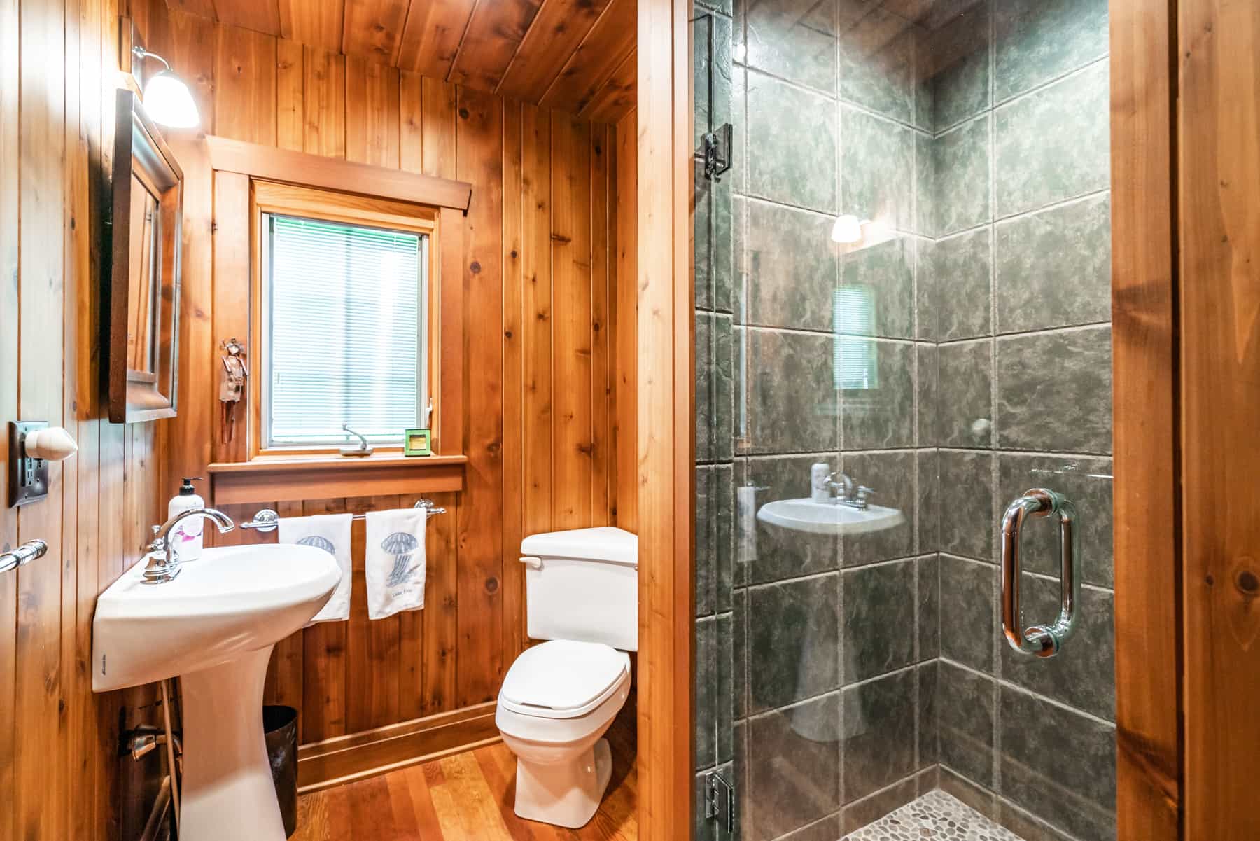This spectacular cottage has striking views of the lake with many windows and an enormous screened in porch. A one of a kind cottage that offers the rustic feel of a cabin, but on a huge scale. Nestled on 2 acres the home is very private with a wooded back yard and an amazing beach. Cozy up by the gas fireplace (Fireplace not available between June 15 – August 31) on cool evenings and enjoy some family time. Note this home has and attached private separate unit that is rented long term to a guest that uses it occasionally and a second cottage behind that is a vacation rental and will share the beach.