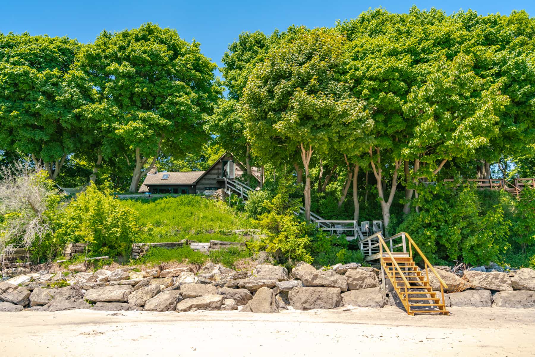 With stairs down the the private beach this is a perfect vacation spot if you are looking to get away from it all. Only 450 meters from Humberstone Centennial Park which offers public amenities including a playground and washroom facilities. The Sugarloaf Harbour Marina is a quick 15 minute drive.