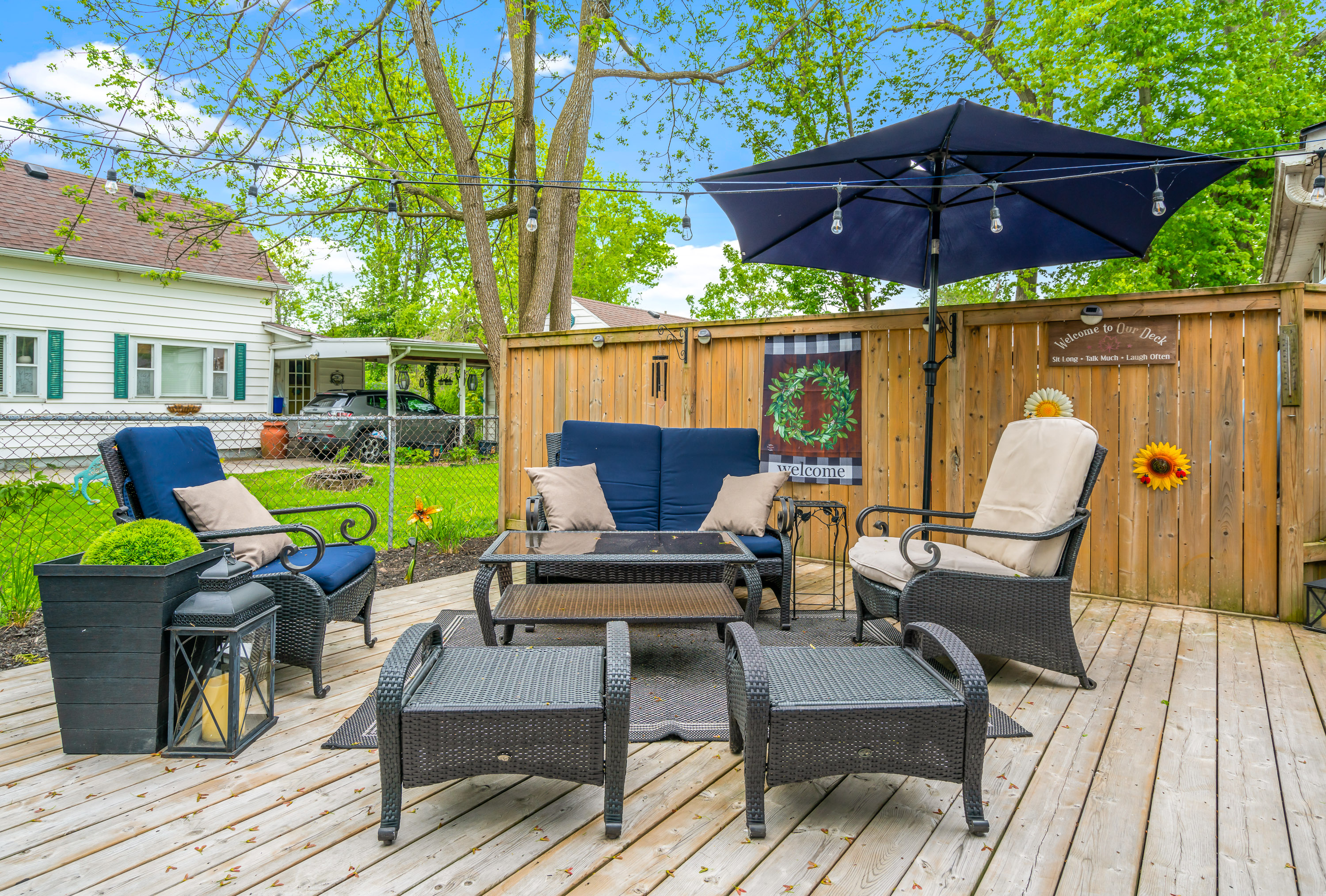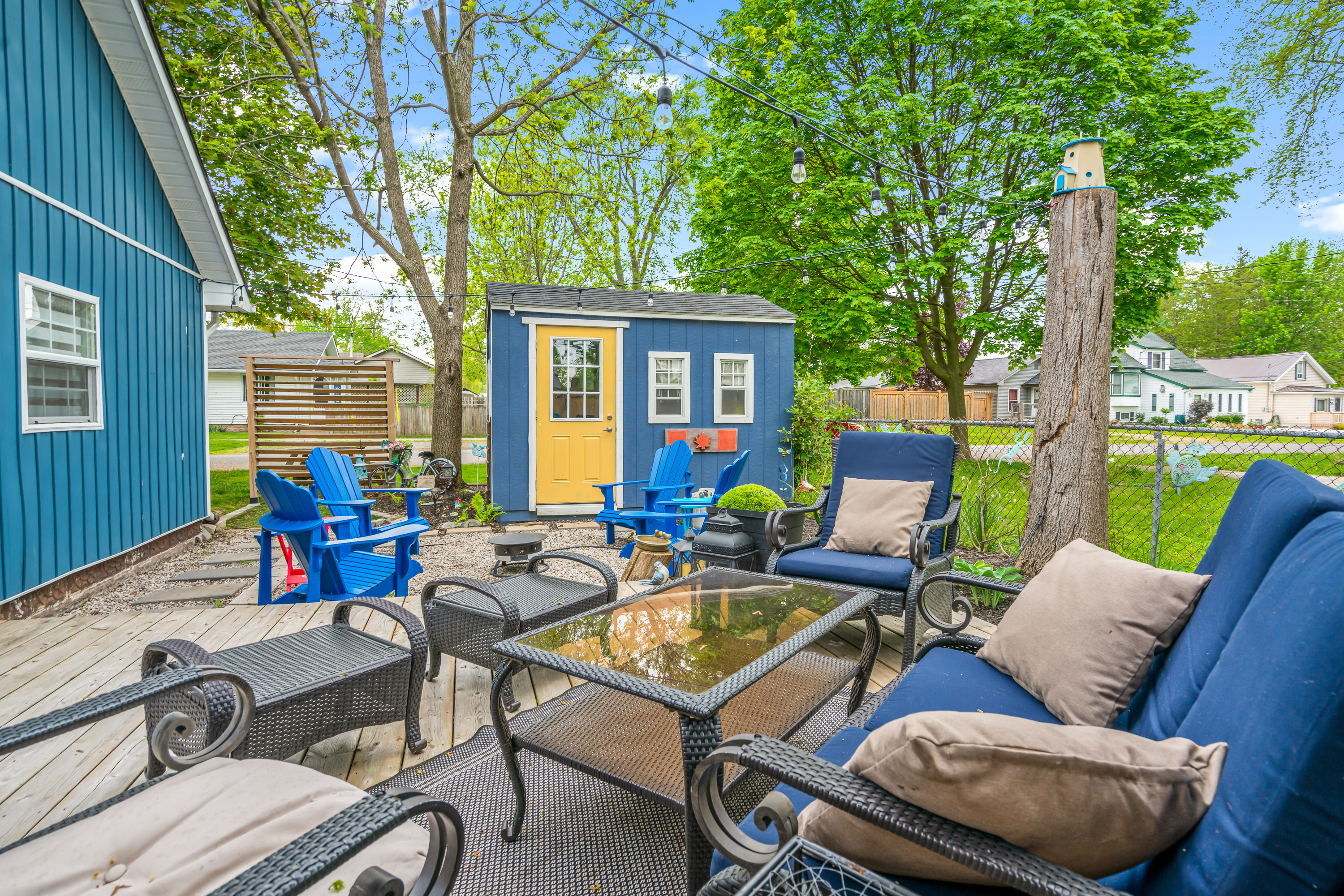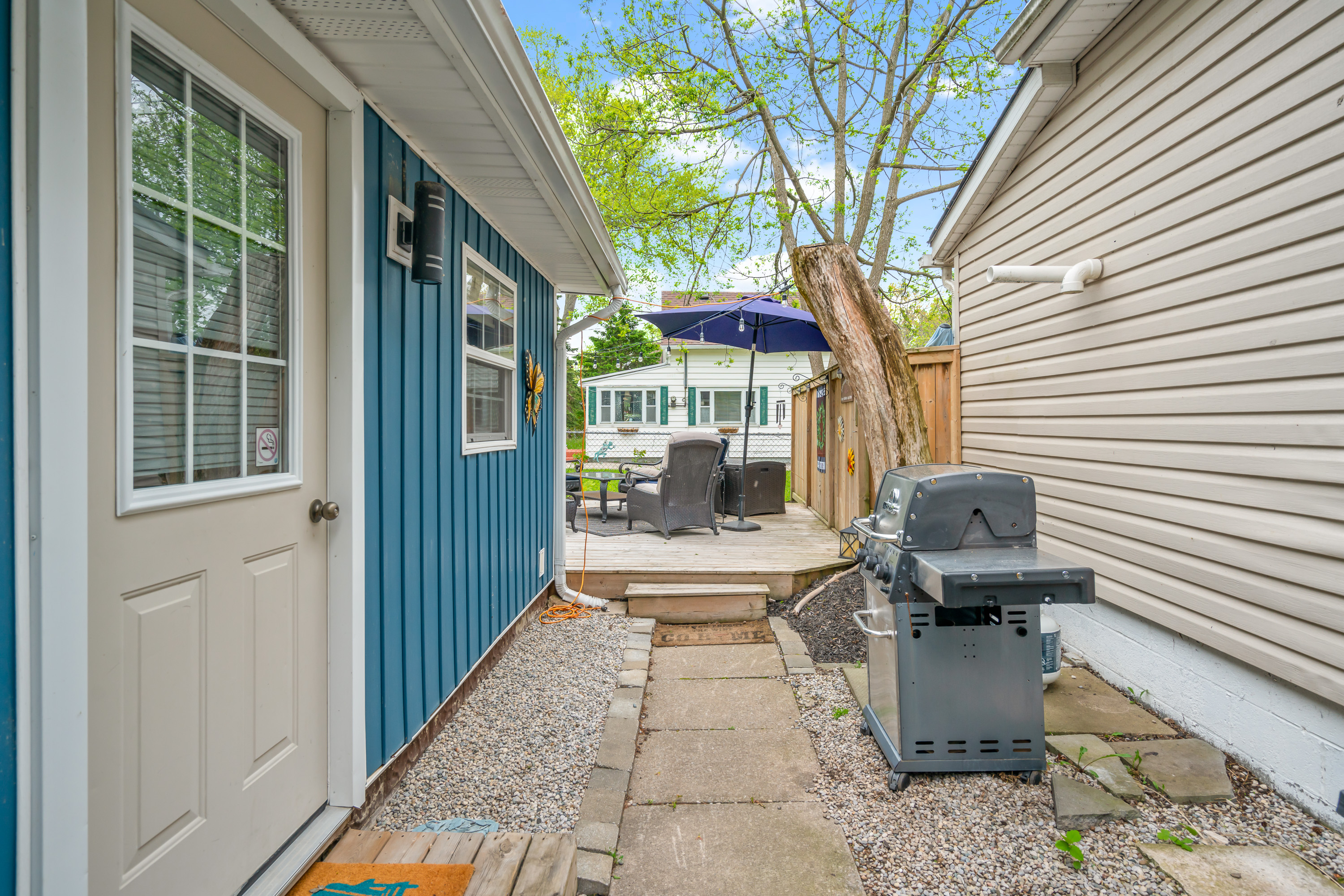 The outdoor amenities continue in the private back yard as there is a fantastic outdoor propane fire table with a cozy deck where you can sit and relax. Oh yes…of course there’s a BBQ too.