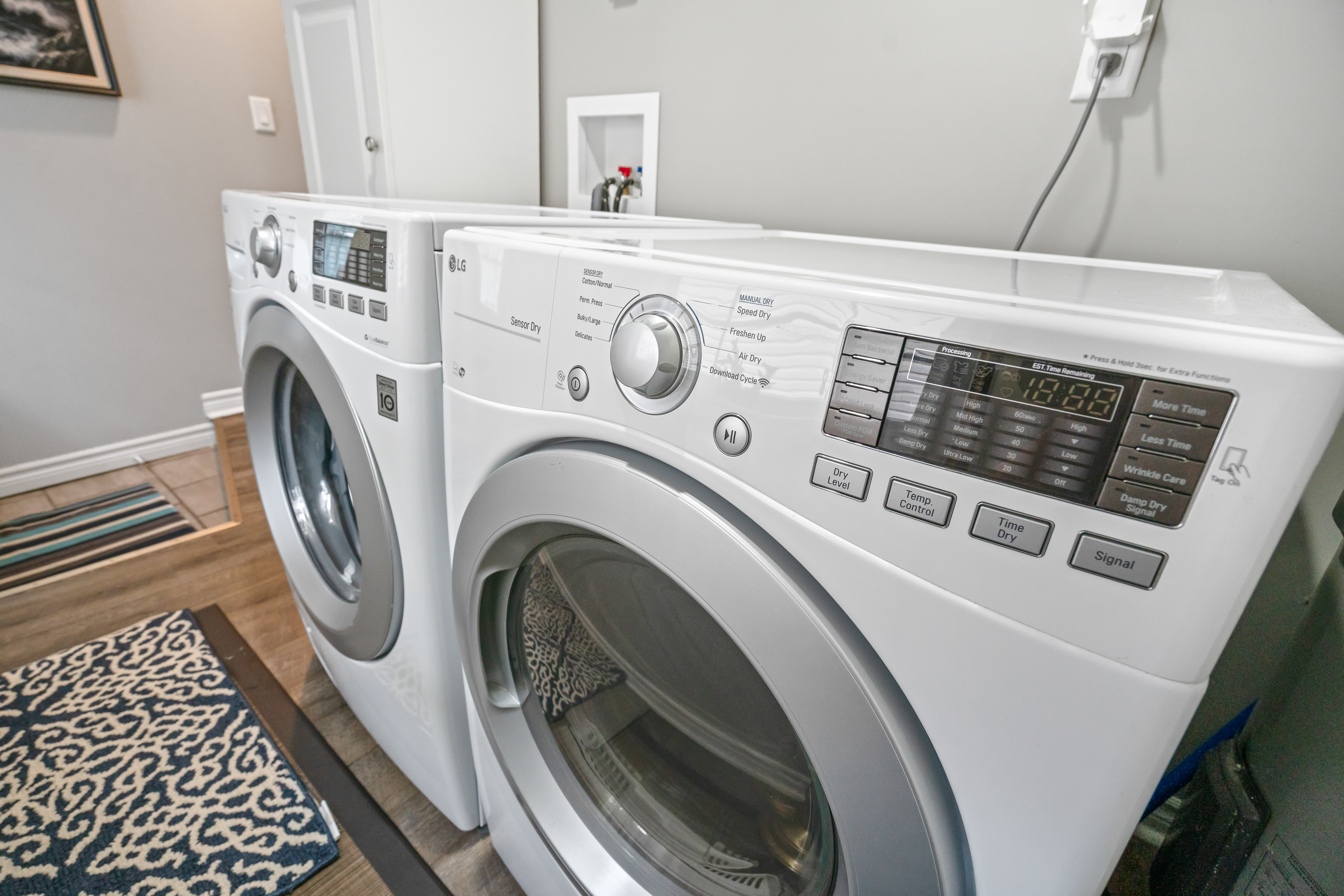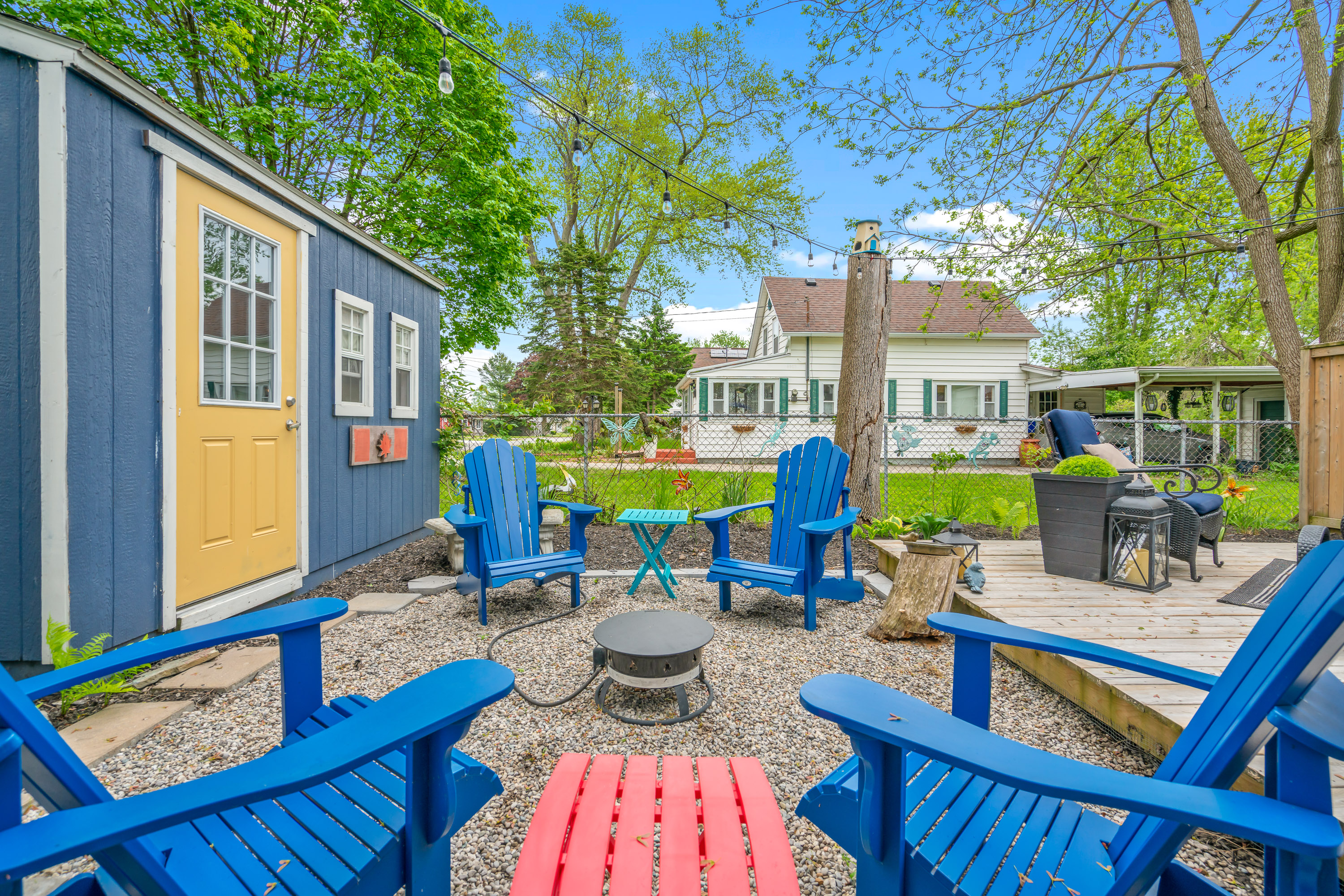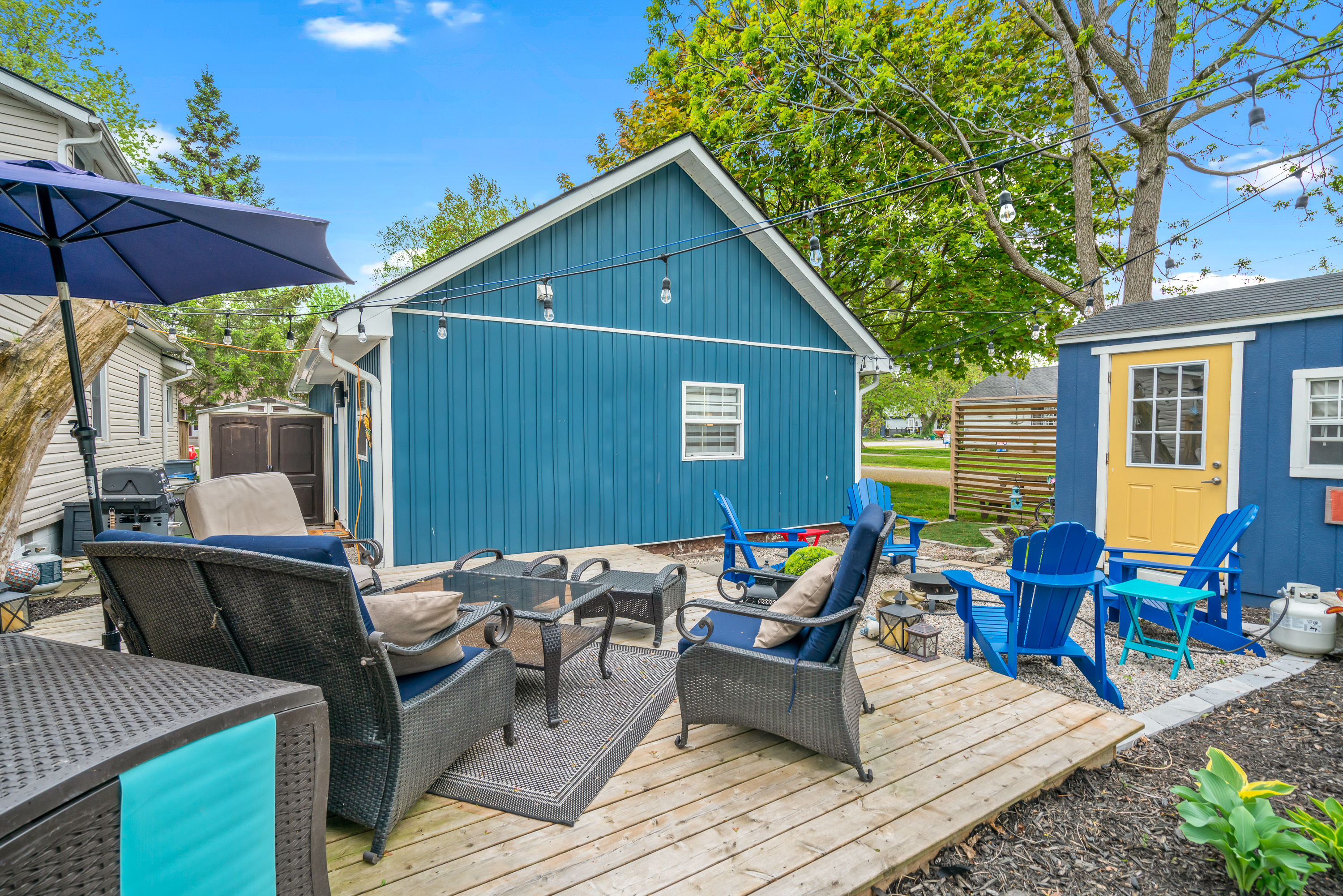 The outdoor amenities continue in the private back yard as there is a fantastic outdoor propane fire table with a cozy deck where you can sit and relax. Oh yes…of course there’s a BBQ too.