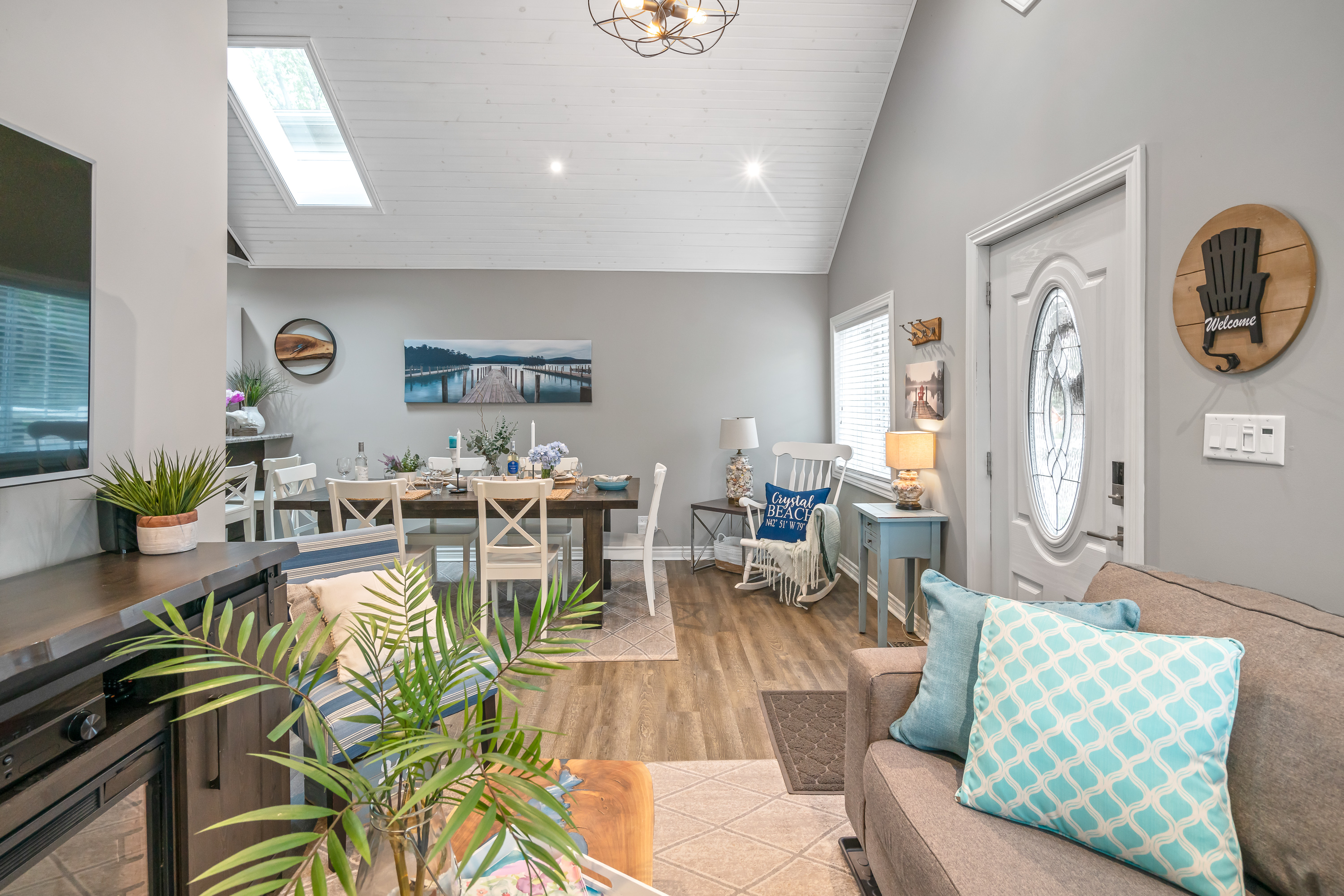 This open concept, updated home has central air conditioning and a cozy living room with pullout bed couch, electric fireplace, Smart TV and unlimited Wifi. The kitchen is bright, updated a fully equipped. There are stainless appliances including a gas stove and dishwasher. For coffee lovers, you’ll have your choice of a standard coffee pot plus a Keurig and Tassimo (please bring your own pods).