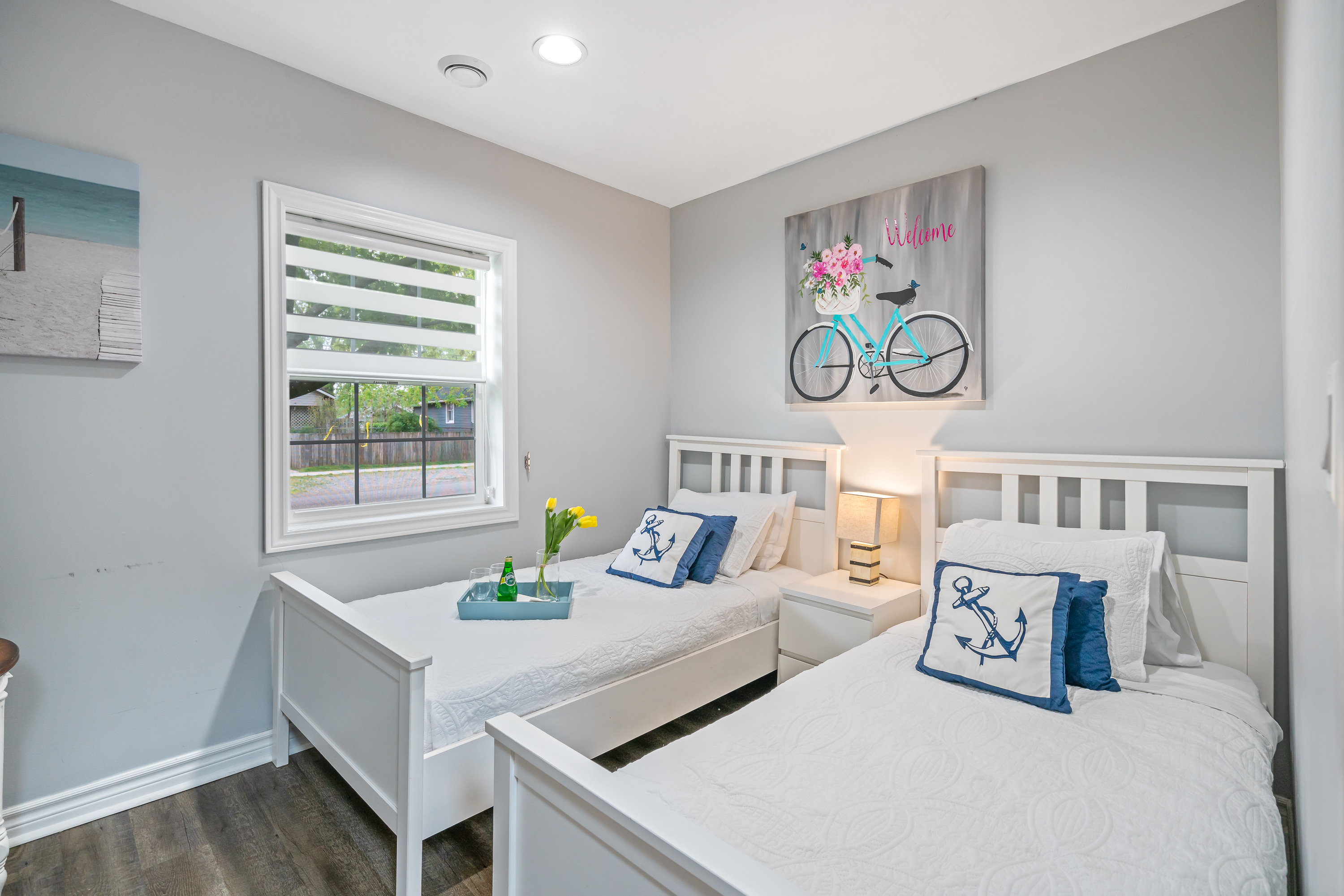 ackyard Bliss at this Beachy Abode - Sleeps 6, Close to Beach. Home Away From Home has all the comforts of home and is located just 10 minutes from Bay Beach. The first thing you'll notice is the front porch which is just perfect for relaxing and watching sunsets. This wonderfully warm and welcoming cottage is in a lovely quiet area of Crystal Beach.