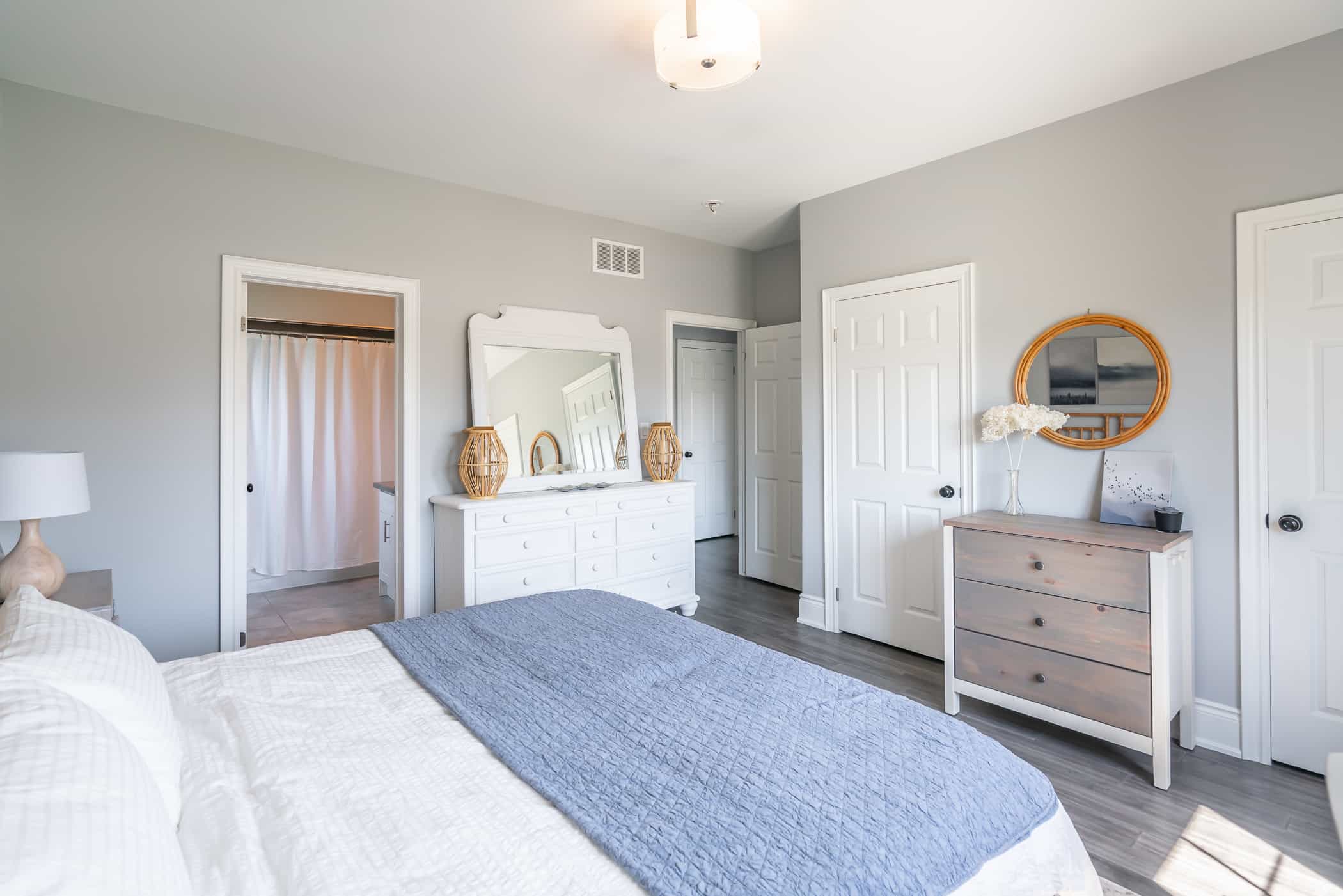 Bedroom 1 – King bed (sleeps 2) with ensuite bathroom (full bath with tub/shower combo)