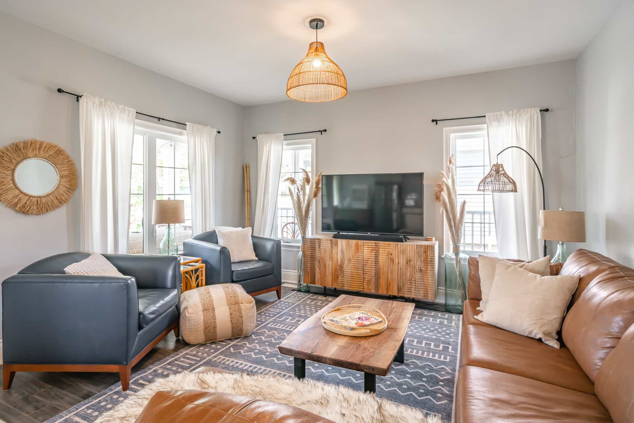Live the “Pure Life” on the amazing covered front porch where you can enjoy dinner or drinks with your family throughout the day. In the evening gather around the backyard for a fire. The yard is completely fenced for privacy.  The upstairs loft bedroom offers its own sitting area with Smart TV and is perfect for a kids separate hangout.