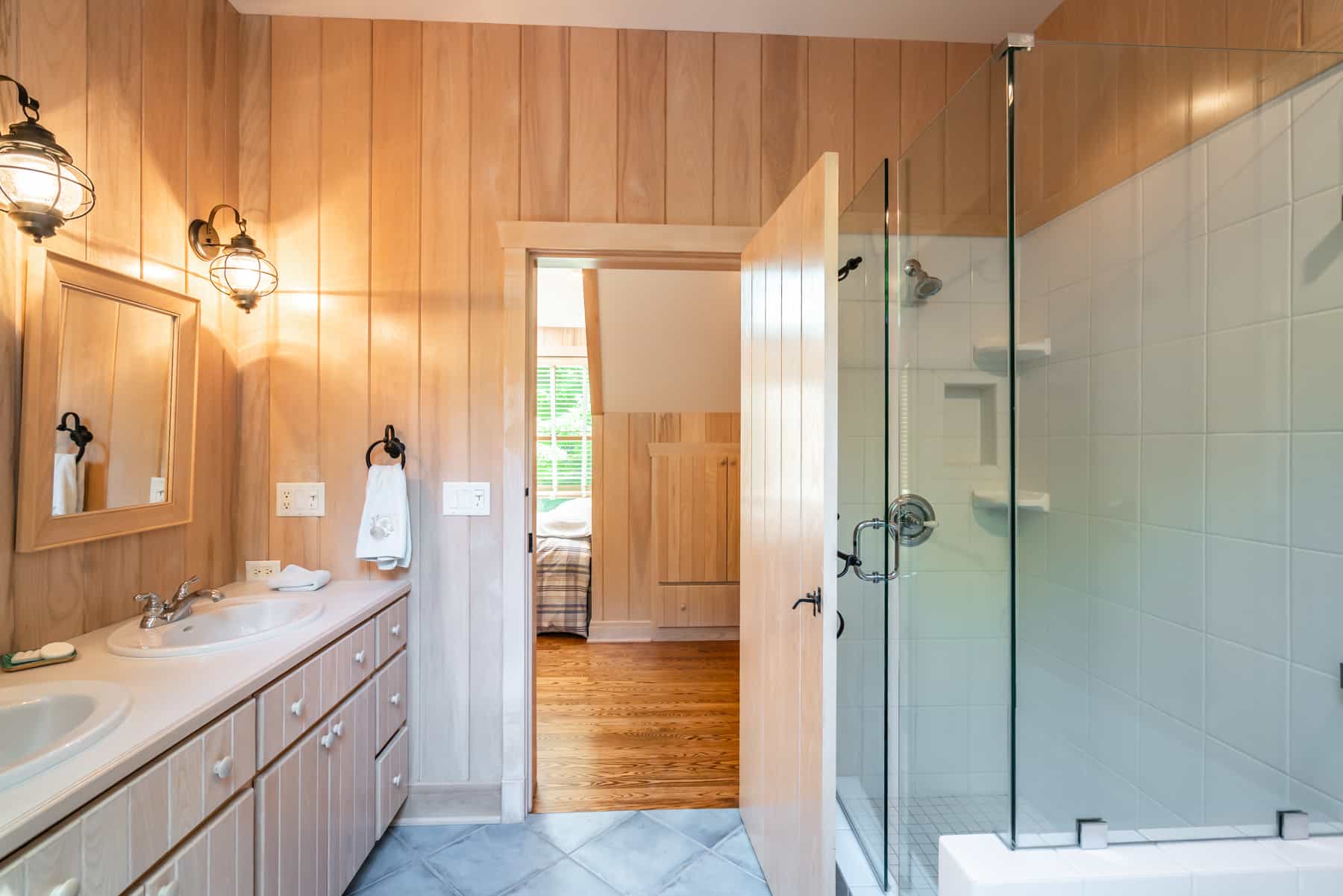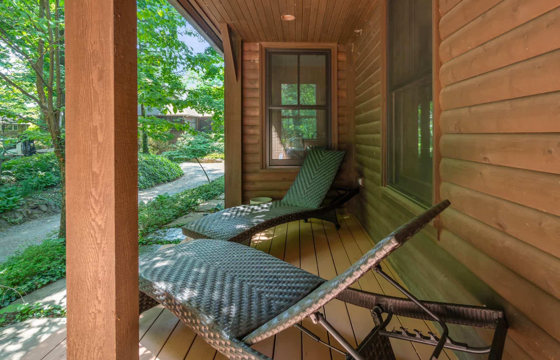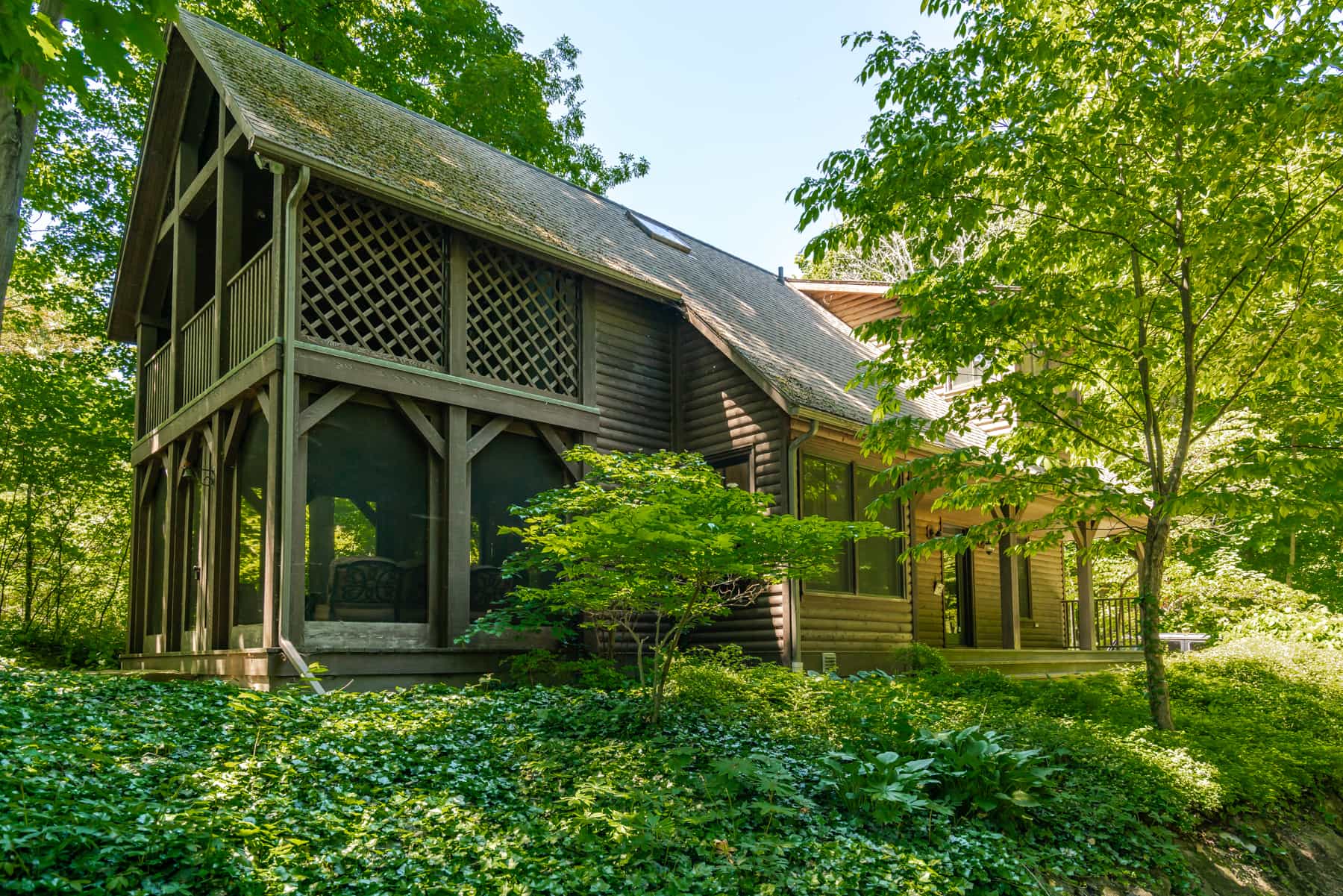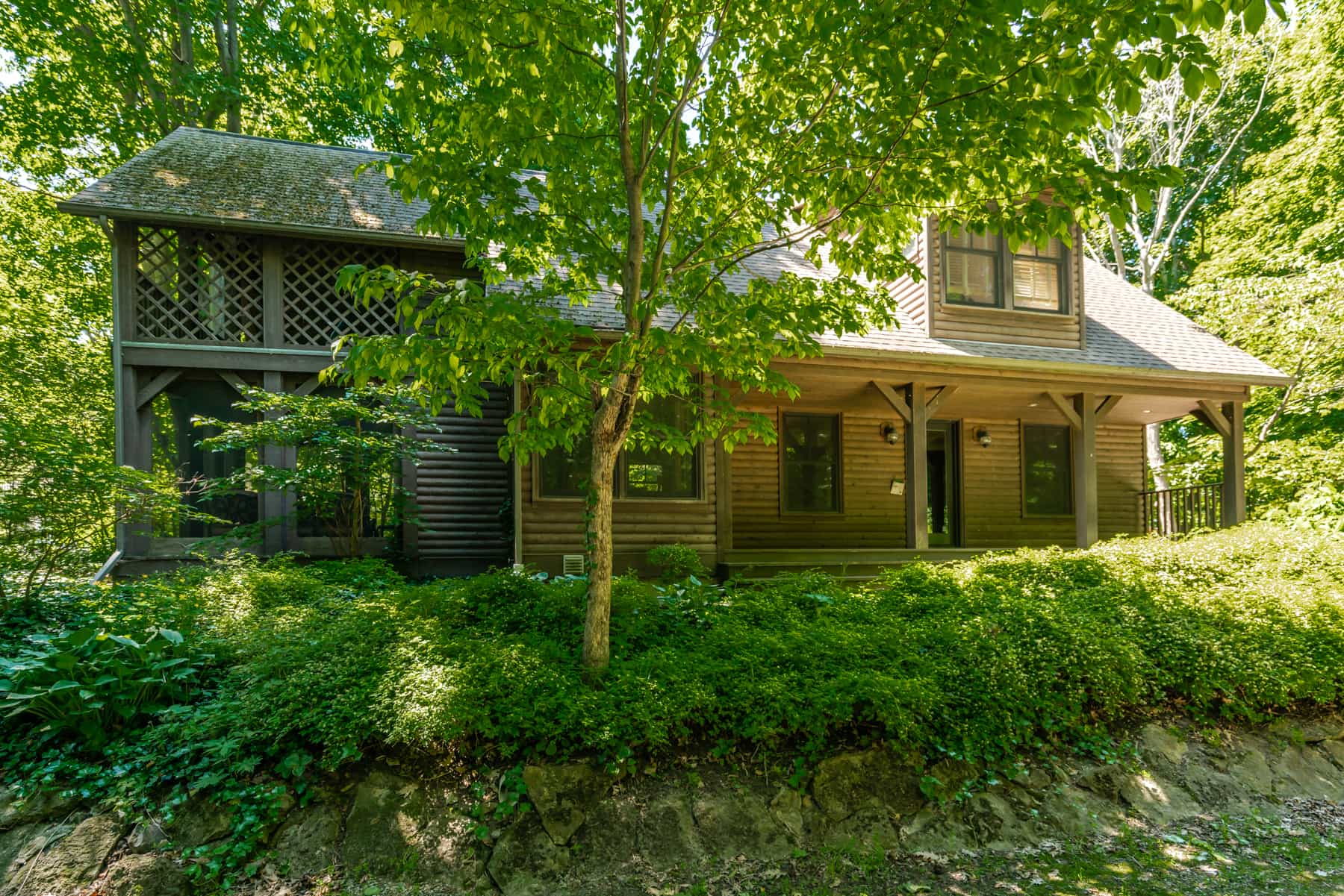 The 2 acre lot has a front house and a back house with plenty of room for all and ample parking. This is the back house and it must be noted that guests may be in the front house at the same time. The private beach is shared with the front cottage guests but it is a large beach with plenty of room. With stairs down the the private beach this is a perfect vacation spot if you are looking to get away from it all.