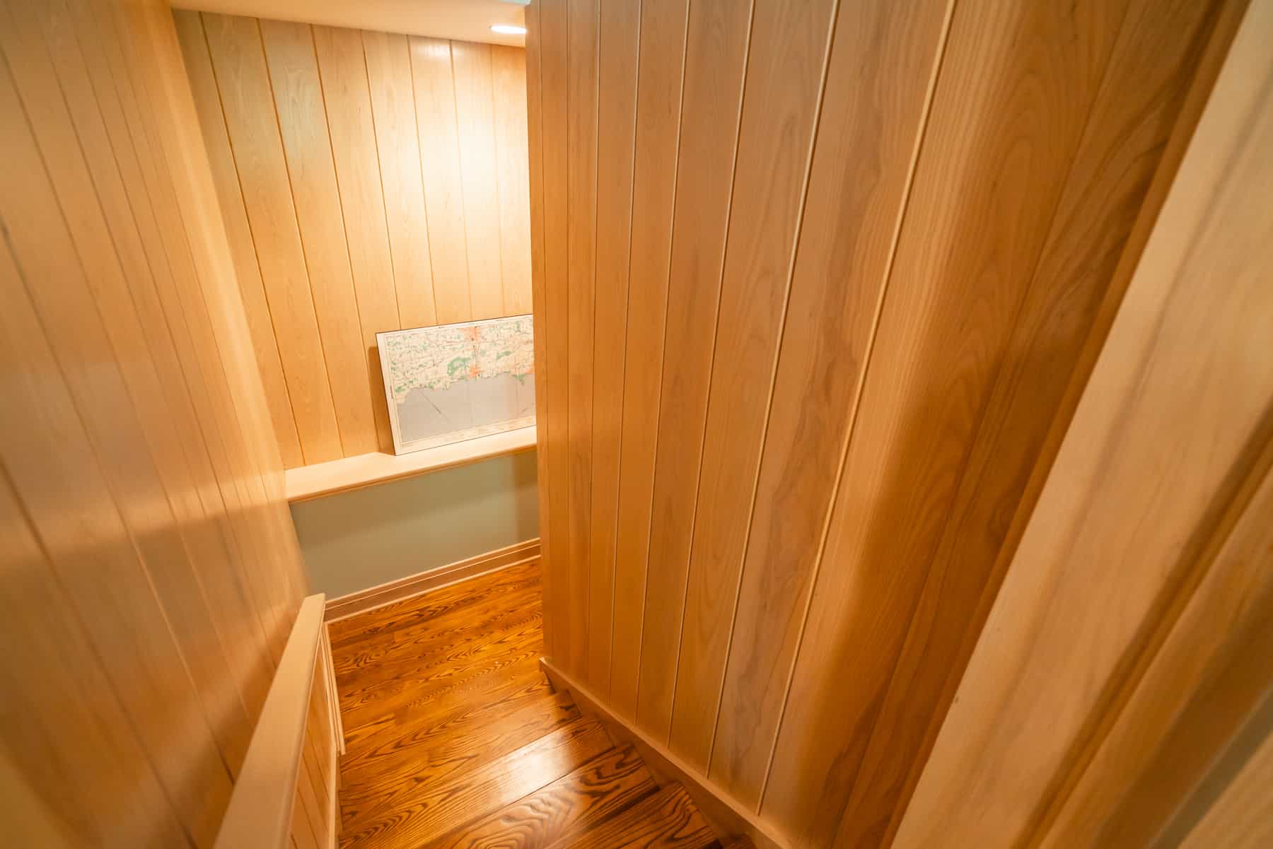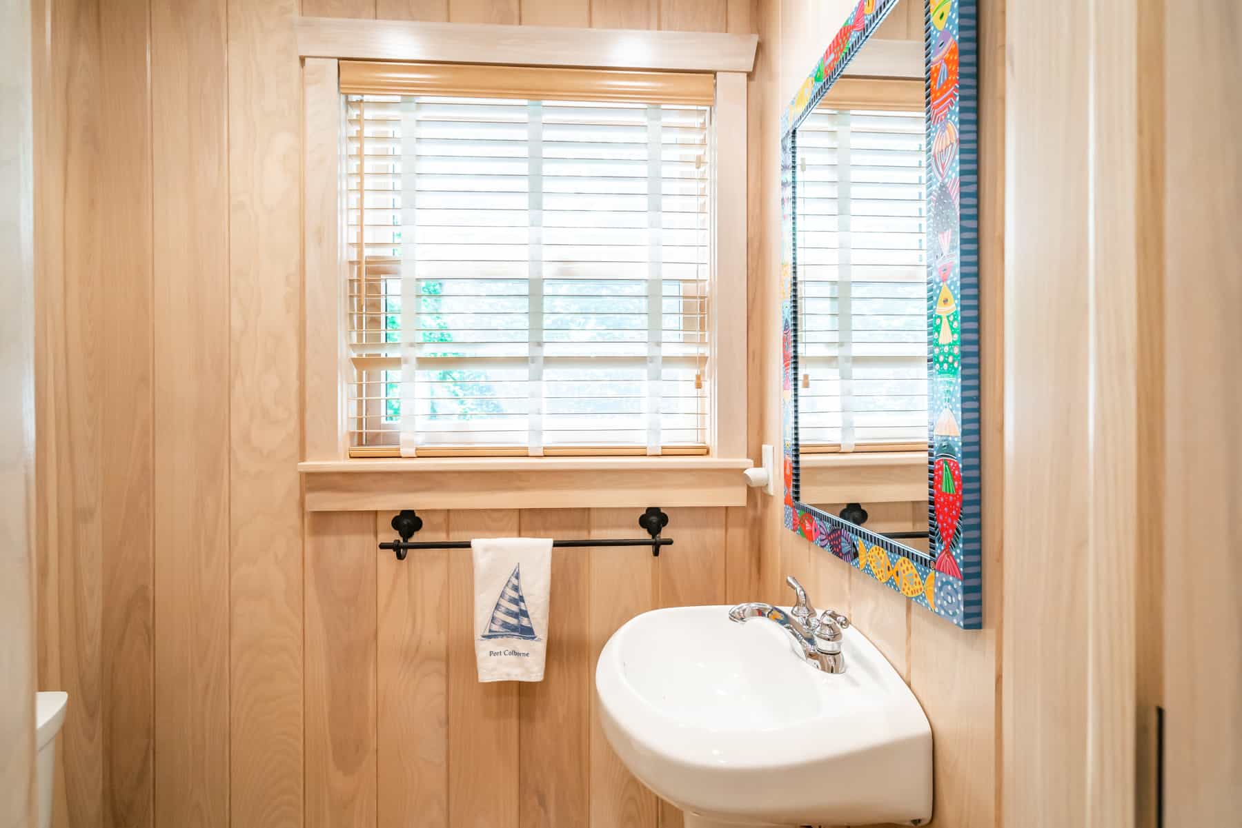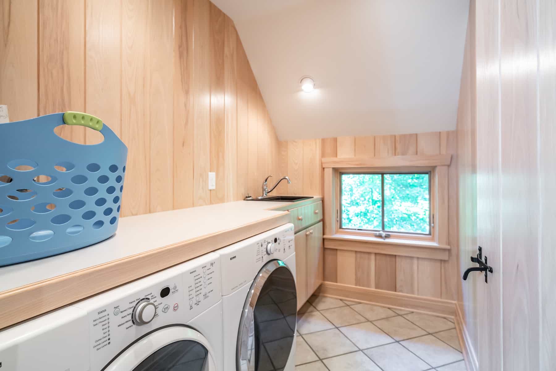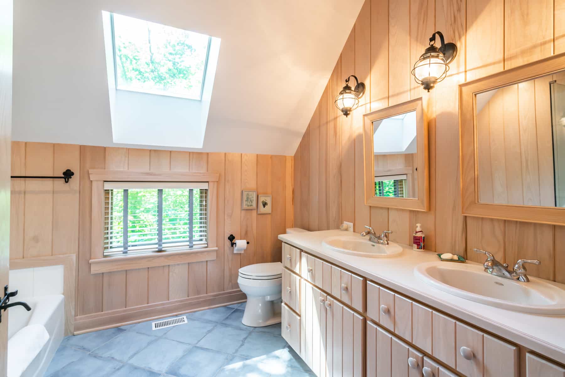The 2 acre lot has a front house and a back house with plenty of room for all and ample parking. This is the back house and it must be noted that guests may be in the front house at the same time. The private beach is shared with the front cottage guests but it is a large beach with plenty of room. With stairs down the the private beach this is a perfect vacation spot if you are looking to get away from it all.