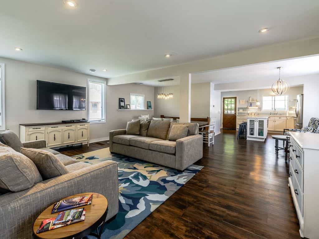 This 1800 square foot home offers all of the amenities from home including a fully equipped kitchen, all new stainless steel appliances (including dishwasher), washer/dryer, central air, unlimited Wifi, cable television and propane BBQ. We sleep up to 8 guests and prefer a maximum of 6 adults per stay.