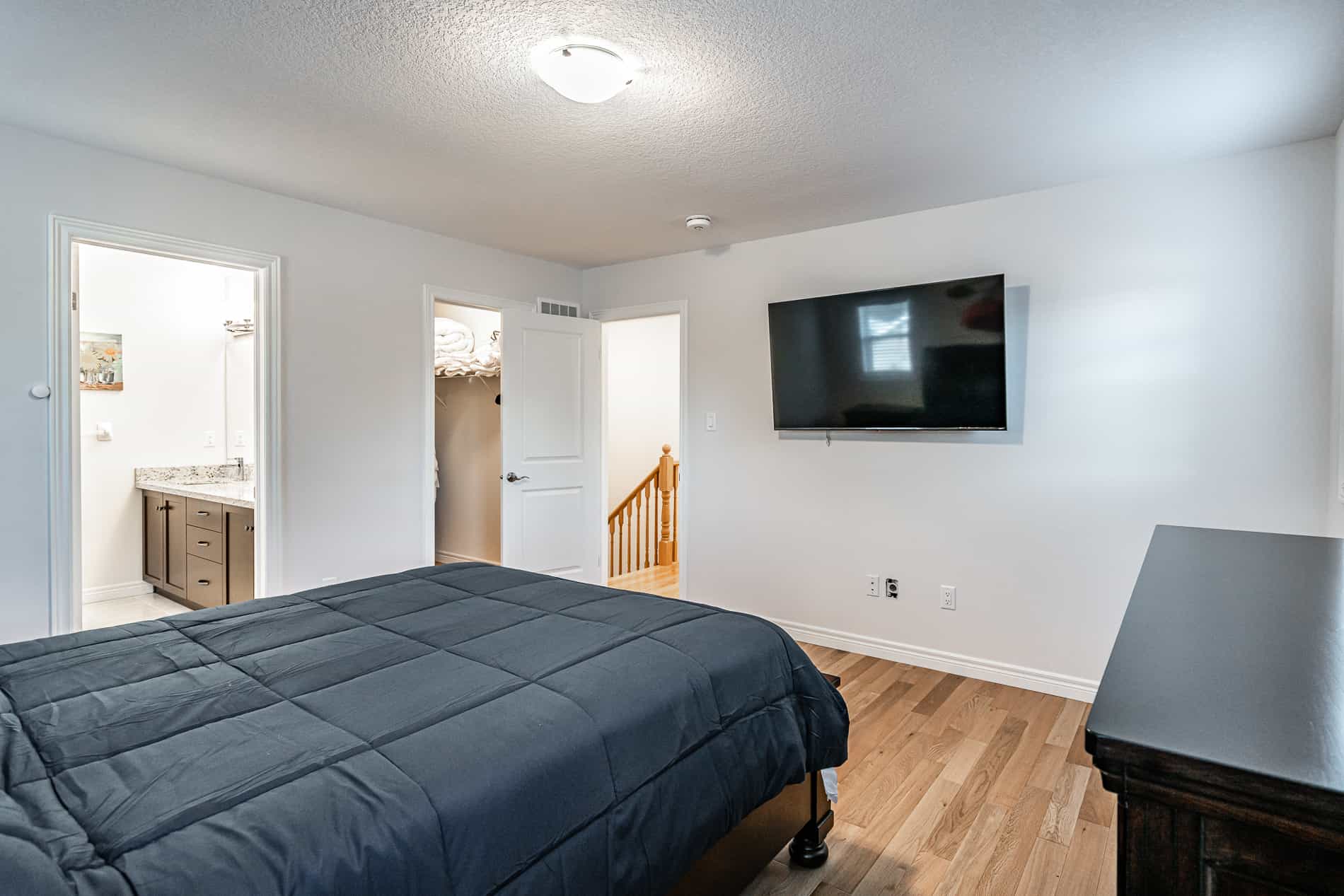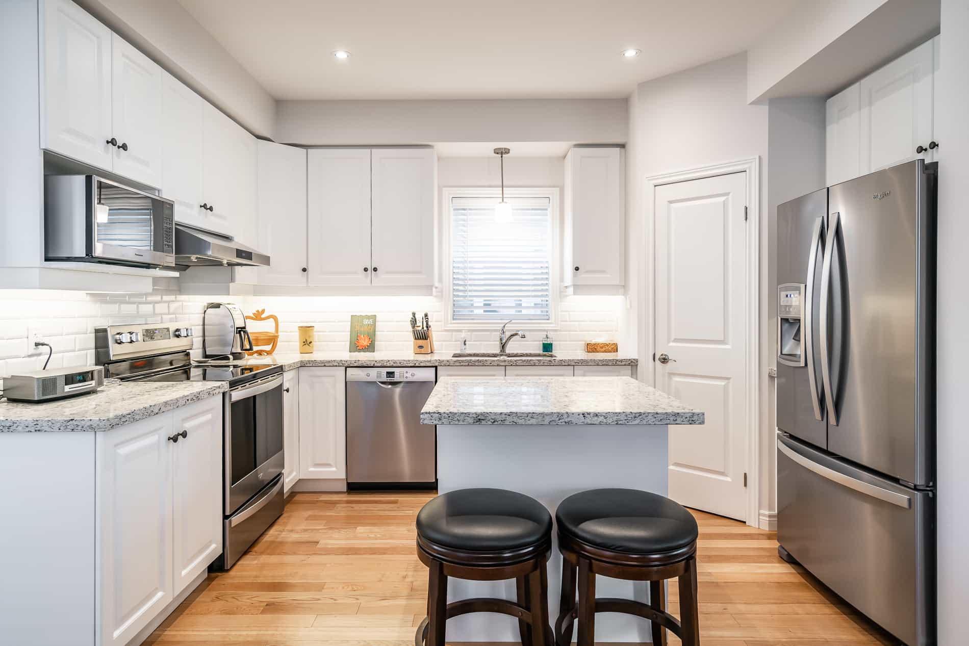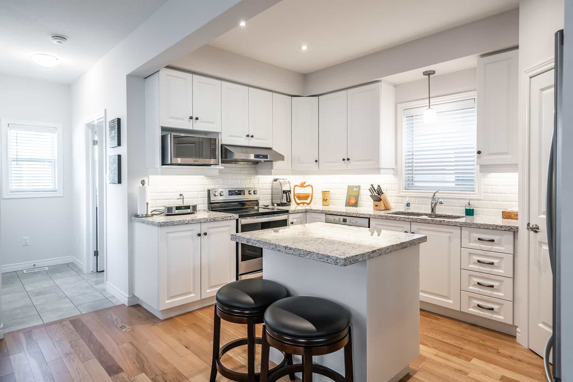 This 1800 square foot house offers all of the amenities from home including a fully equipped kitchen, all new stainless steel appliances (including dishwasher), washer/dryer, central air, unlimited Wifi, Bell Fibe television and a propane BBQ. Comfortably sleeping up to 8 guests as well as providing a separate office space for travelling workers.